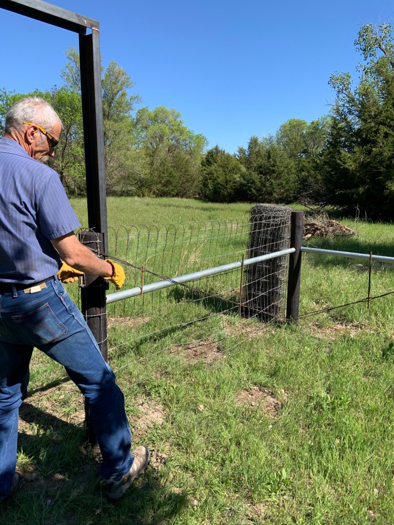 The work involved leading up to putting up a fence is pretty intense. We live in a rural community, we are surrounded by fence – I have a deeper appreciation for all the hard work that goes into building these. As we drive by all the fence, I can see different styles that some have used. Just like cooking or sewing, everyone has there own twist or flare to get what they want. Some fences look like they hired the fence to be put up while others look a little more homemade. They all accomplish the same thing. Either to keep things out or keep things in.
